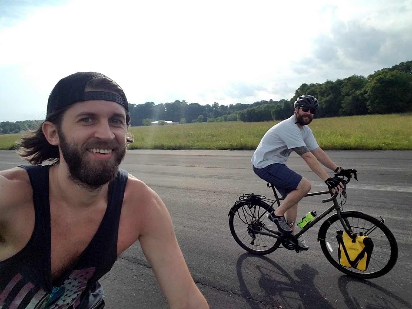 My speeds slowed in the dark. Heavier traffic was oddly welcome as the passing headlights revealed shoulder conditions ahead of me. I did my best to avoid glass and rocks. With no remaining spare tubes, I prayed that the remaining ten miles would leave my wheels unmolested. Otherwise patching a tube in darkness would have been the next feat of the day. The tubes held and I entered civilization again. Upon entering the South on this trip, I believed that a functioning stop light was a true sign of a large town. Now engulfed in darkness, I realized that the true sign of civilization is street lights. With vast improvements in visibility, speeds picked up and I make my last turn into the Reid’s neighborhood. I find the familiar corner on which their home is situated and pull into the drive. Leaning my bike on the garage I head to the front door and ring the bell.