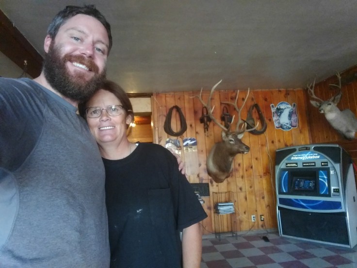 Wiped out by the heat and mental strain of poor roads, the group decides, upon arriving to Jeffrey City, to go to the one and only bar in town for a cold drink. The bar has a surly bartender who challenges each patron at every chance. It turns out Isebel is the owner, bartender, cook, server, bouncer, DJ of the Split Rock Cafe and Bar. She earns our respect immediately with cold beer, hilarious jokes and delicious food.