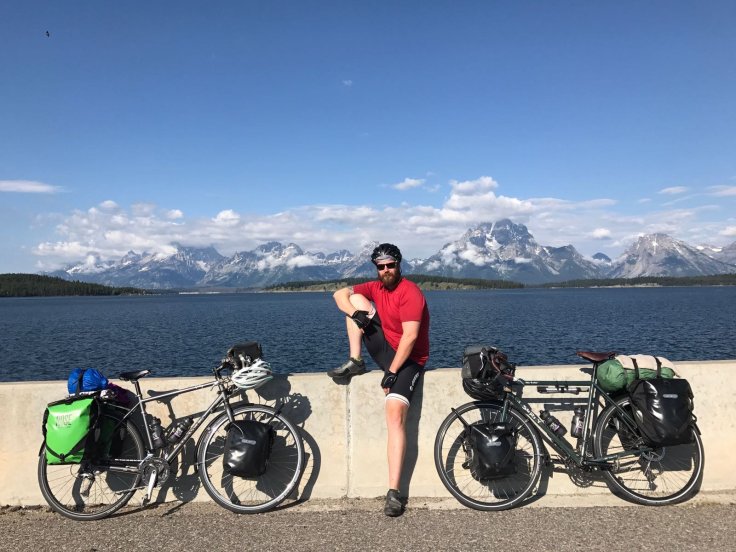 David and I are offered space to camp by a random guy, Tim who was camping by himself for a few days. Tim recently lost his wife and was out seeing the country, coping in his own special way. After I solo swim in the lake, a few of us shared a few beers and conversation as an electrical storm flashed behind the Tetons. The thunderless strikes illuminated massive silohuettes. All decide to turn in as the storm came closer. I was last to bed taking in the granduer.