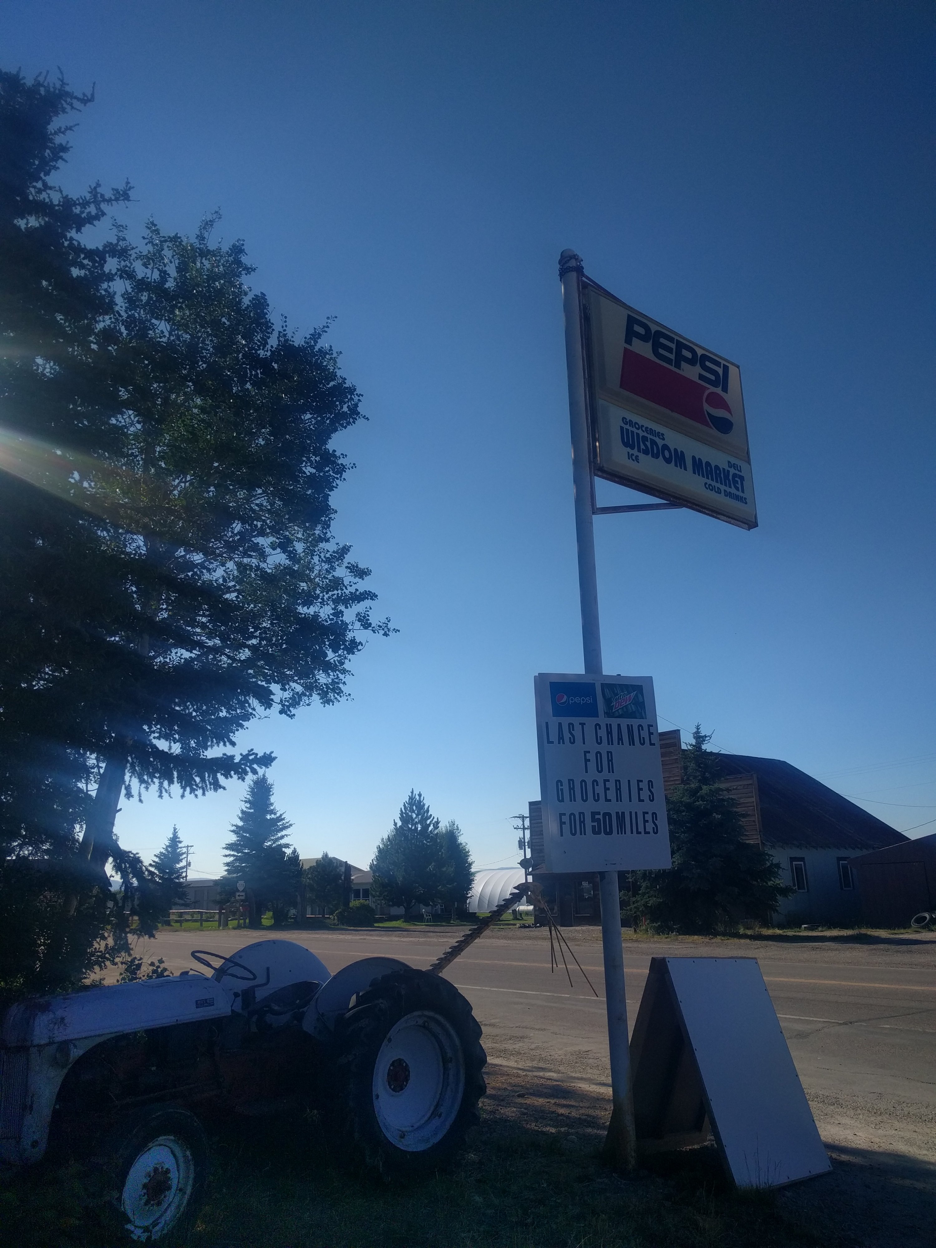 We battle some more miles and get into Wisdom, a town with a market and two restaurants, all of which are open. Jon and I eat dinner then head to the local RV park for our accommodations of the night.